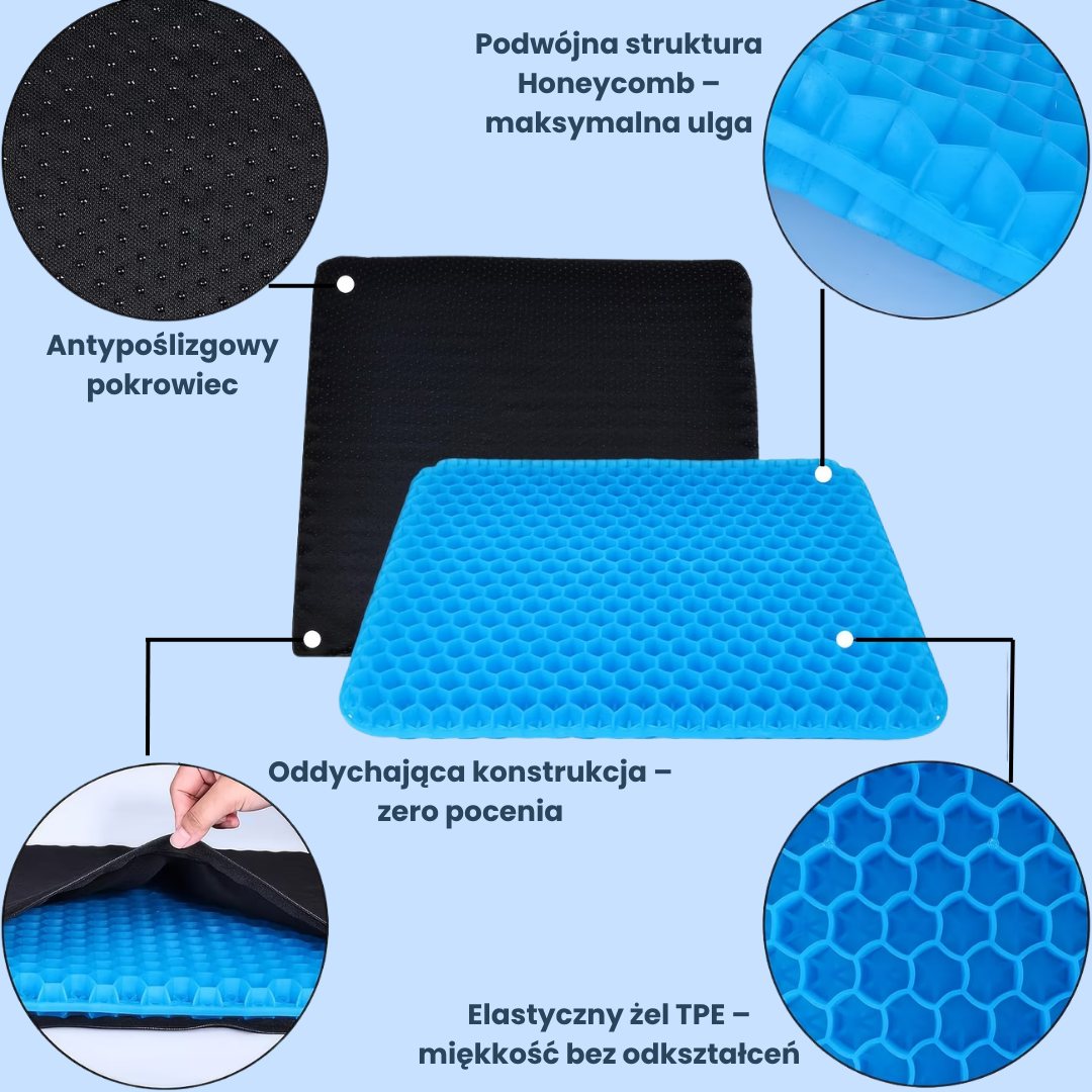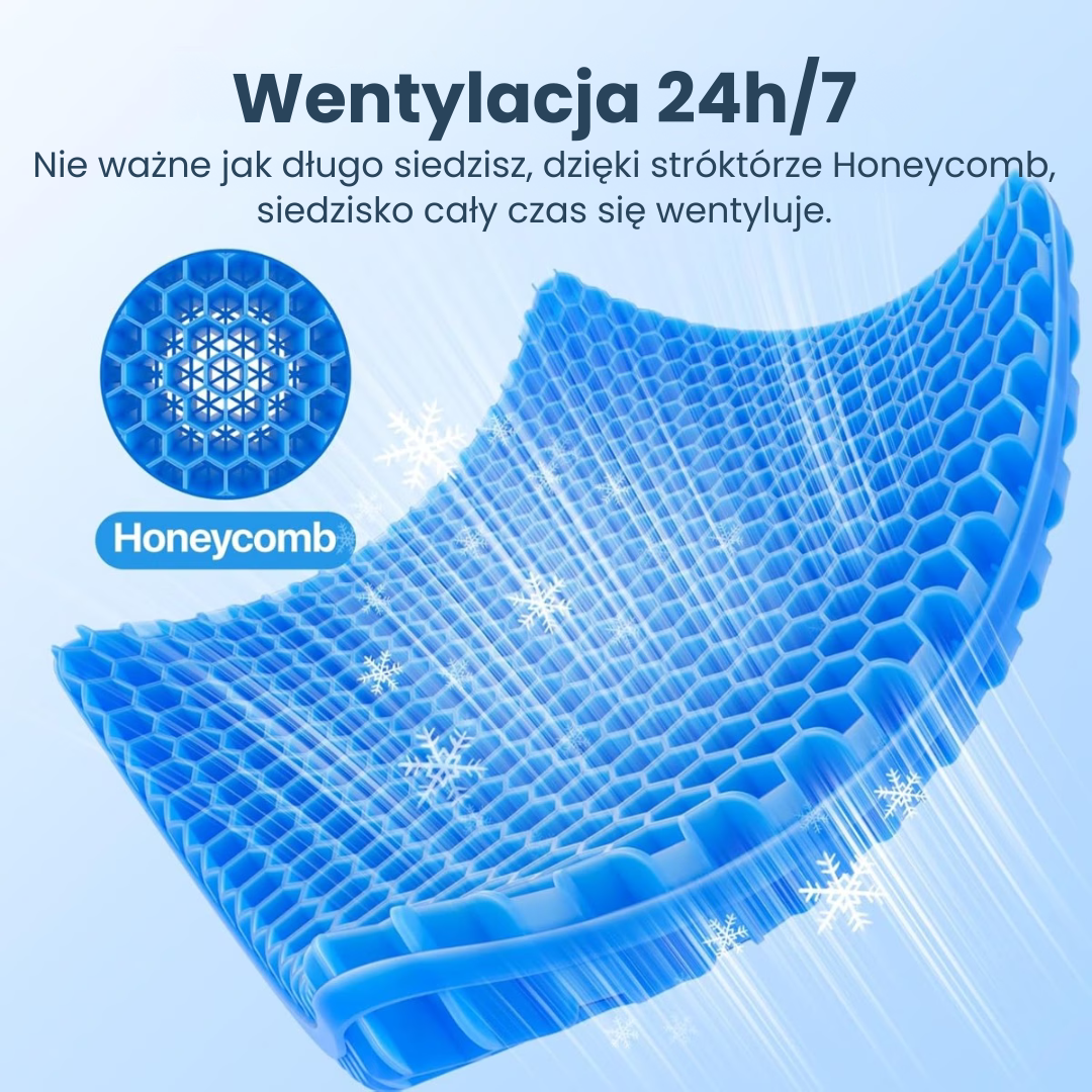 Dzięki strukturze plastra miodu powietrze swobodnie przepływa przez poduszkę, zapobiegając gromadzeniu się ciepła. W przeciwieństwie do zwykłej pianki, technologia Honeycomb utrzymuje optymalną temperaturę, zapewniając świeżość i komfort nawet podczas wielogodzinnego siedzenia.