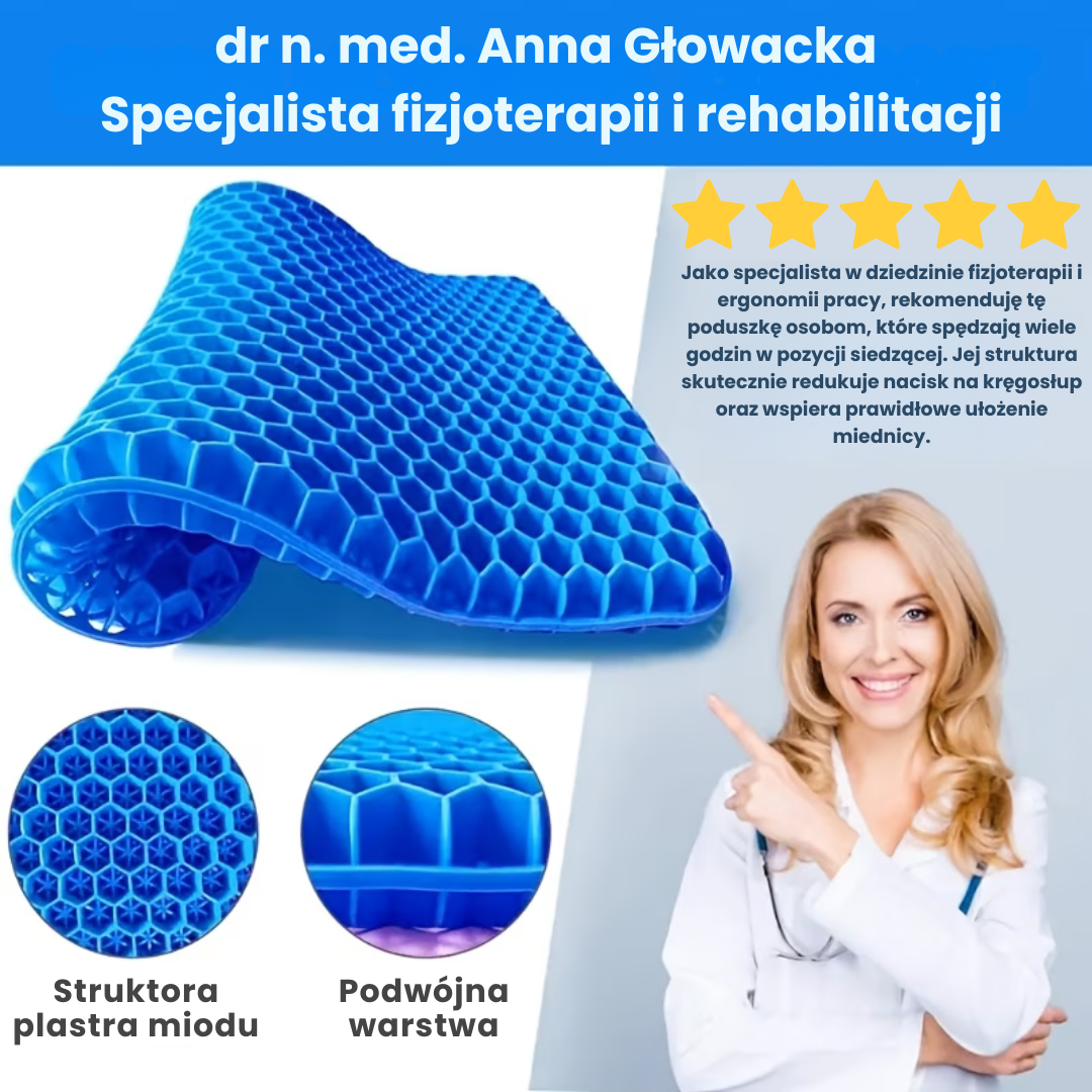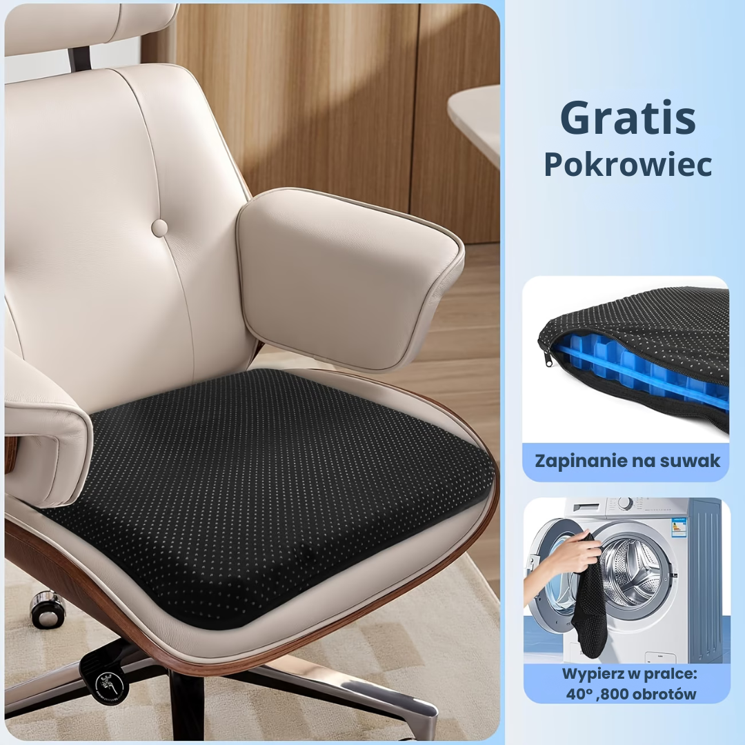 Bez odpowiedniego wsparcia kręgosłup jest narażony na napięcie i ból. Z poduszką żelową Zentro Twoje ciało przyjmuje naturalną, ergonomiczną pozycję, która odciąża plecy i poprawia komfort siedzenia.